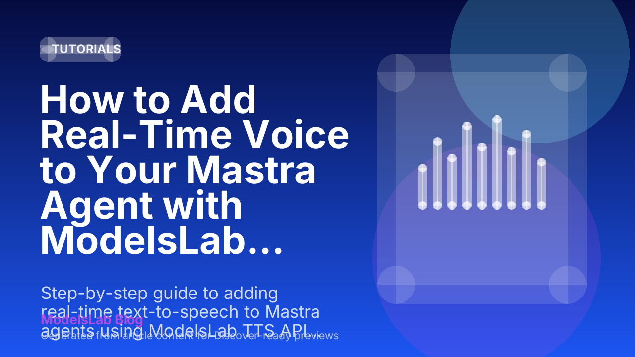 How to Add Real-Time Voice to Your Mastra Agent with ModelsLab TTS Why Add Voice to Your Mastra Agent? Mastra is one of the fastest-growing TypeScript AI agent frameworks — 21,000 GitHub stars and climbing. Out of the box it handles memory, tools, and workflows. Wh... Tutorials Written by Adhik Joshi on Mar 3, 2026